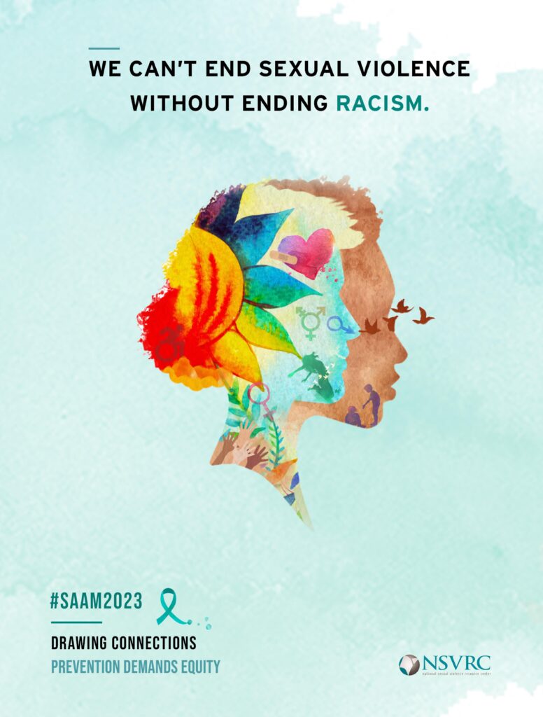 The theme of Sexual Assault Awareness Month 2023 was “Drawing Connections: Prevention Demands Equity.” This campaign called on all individuals, communities, organizations, and institutions to change ourselves and the systems surrounding us to build racial equity and respect.